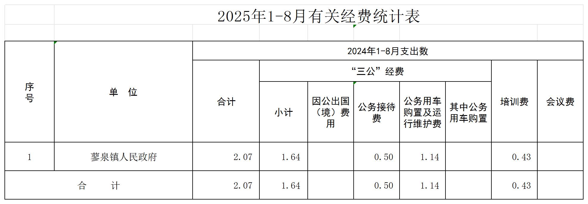 2025蓼泉镇部门“三公”经费财政拨款情况(1月---8月)