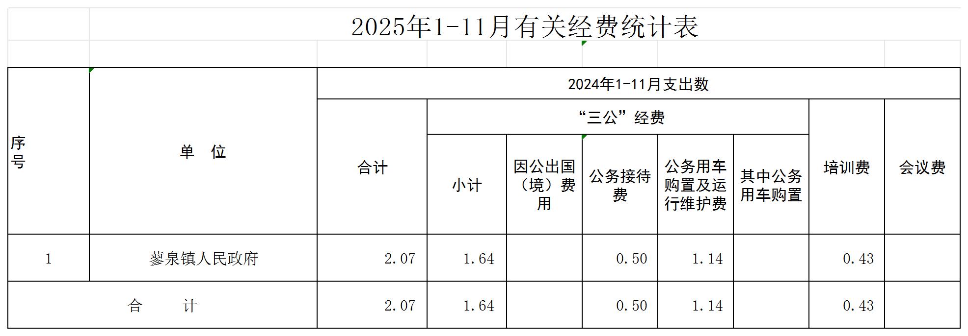 2025蓼泉镇部门“三公”经费财政拨款情况(1月---11月)