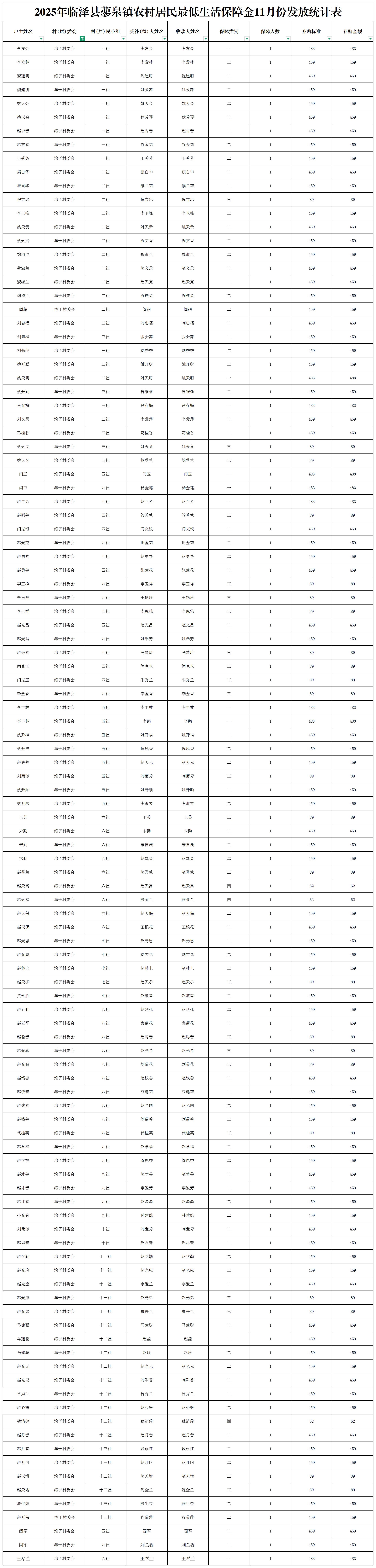2025年临泽县蓼泉镇农村居民最低生活保障金11月份发放统计表(湾子村)