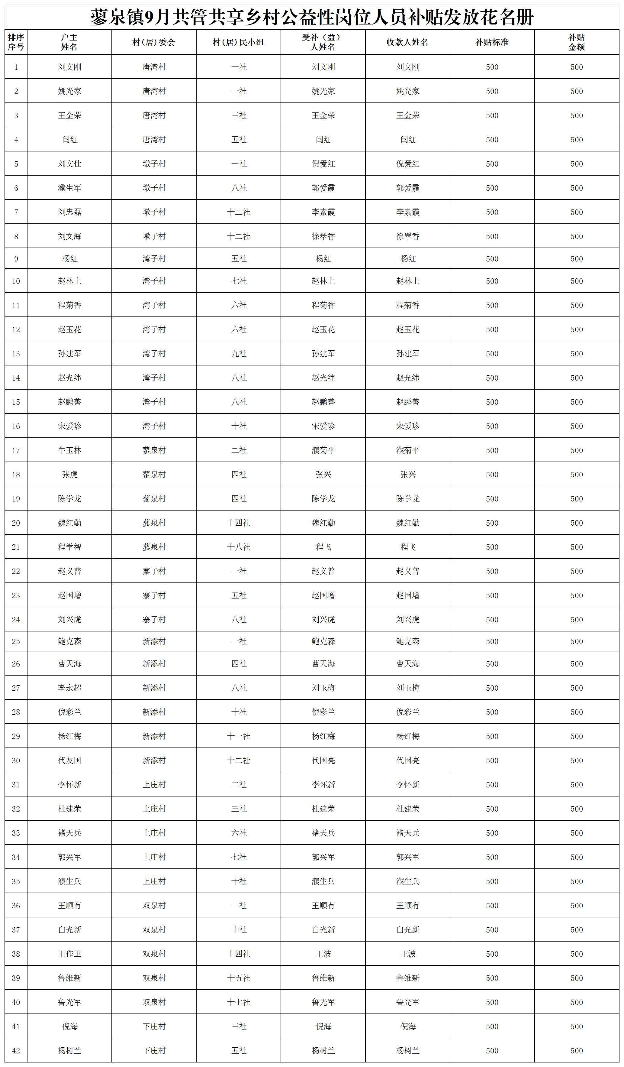 2025年蓼泉镇9月共管共享乡村公益性岗位人员补贴发放花名册