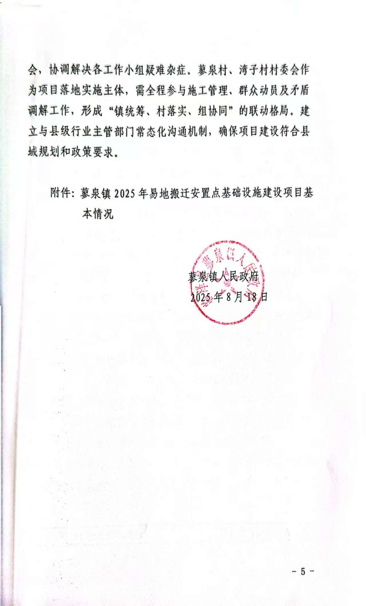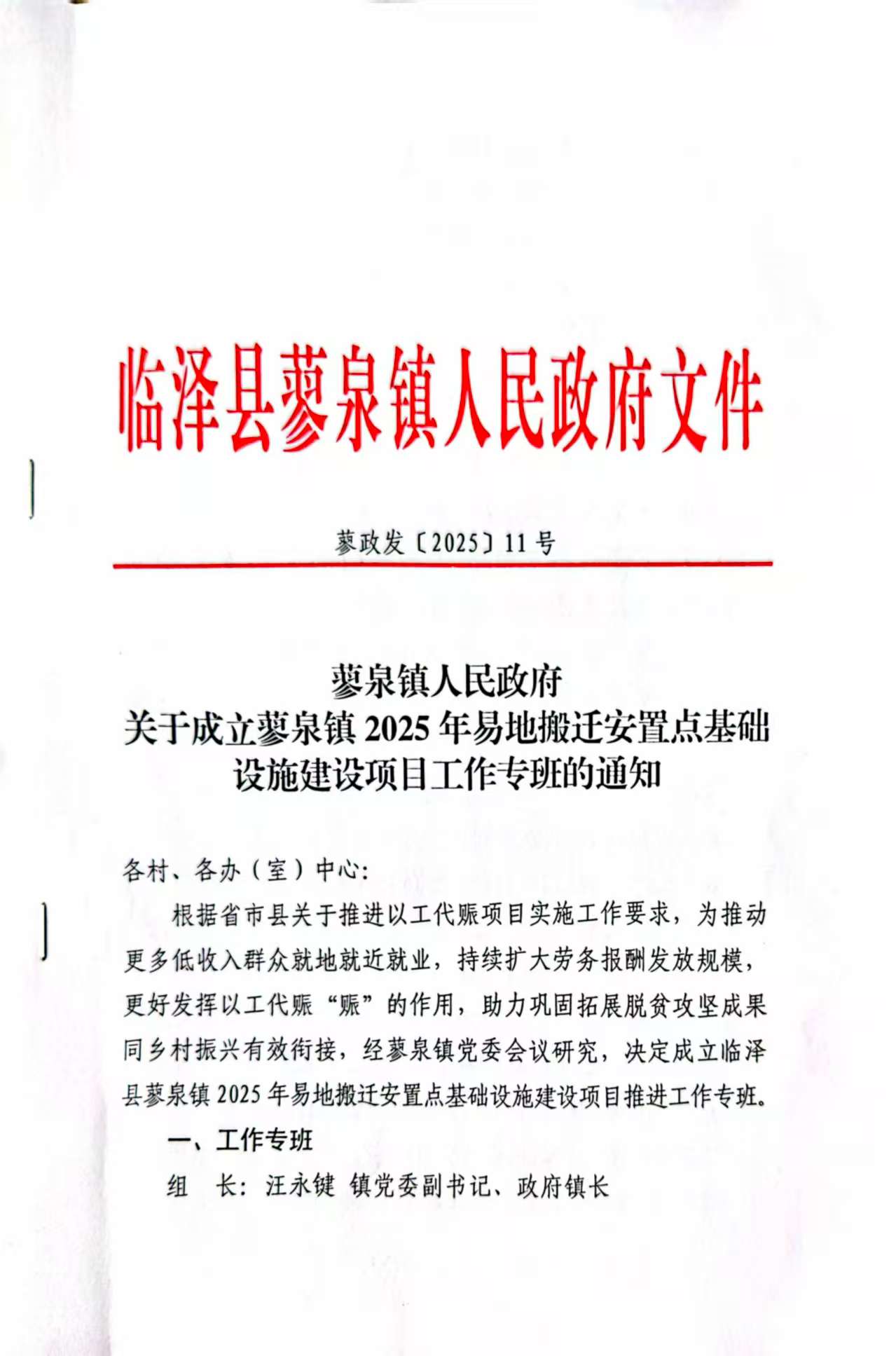 蓼泉镇人民政府关于成立蓼泉镇2025年易地搬迁安置点基础设施建设项目工作专班的通知