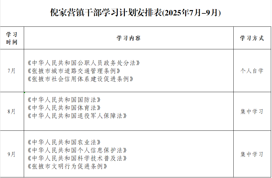 倪家营镇干部学习计划安排表(2025年7月-9月)