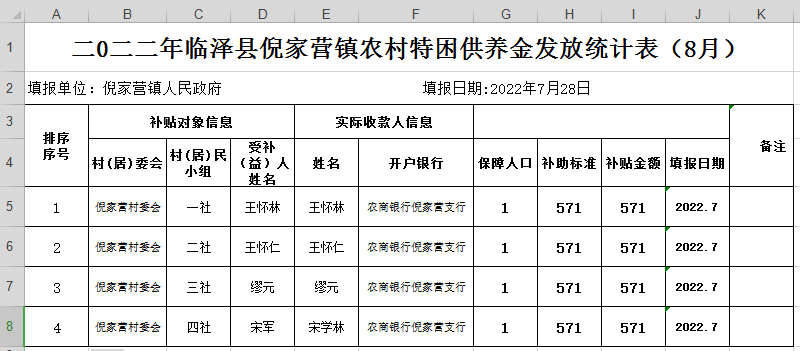现将2022年临泽县倪家营镇倪家营村农村特困供养金发放如下: