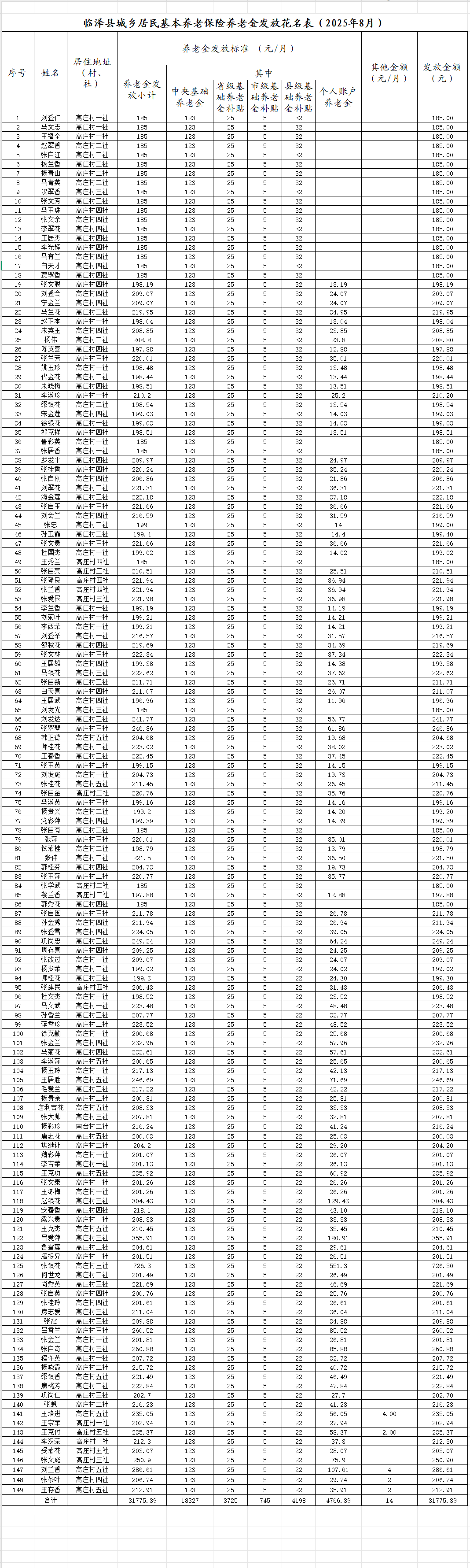 2025年8月倪家营镇高庄村城乡居民基本养老保险养老金发放公示