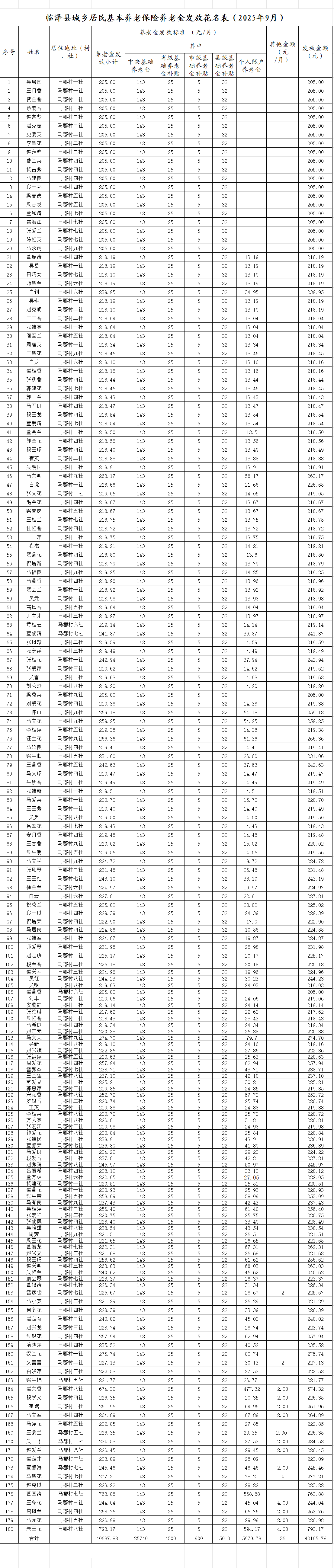 2025年9月倪家营镇马郡村城乡居民基本养老保险养老金发放公示