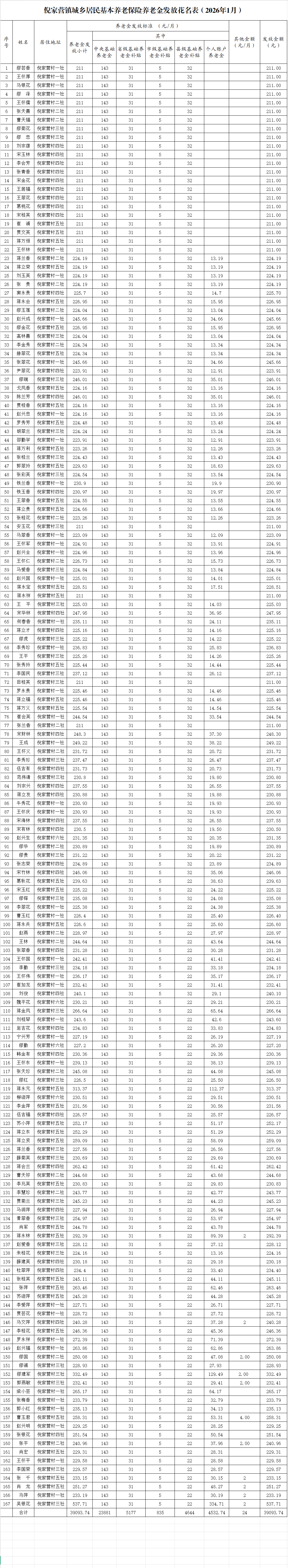2026年1月倪家营镇倪家营村城乡居民基本养老保险养老金发放公示