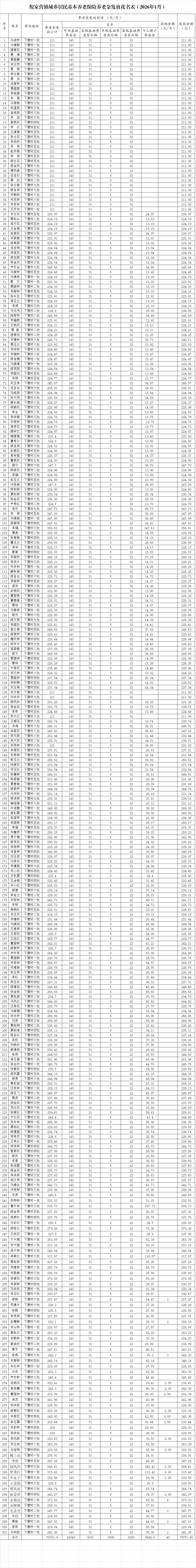 2026年1月倪家营镇下营村城乡居民基本养老保险养老金发放公示