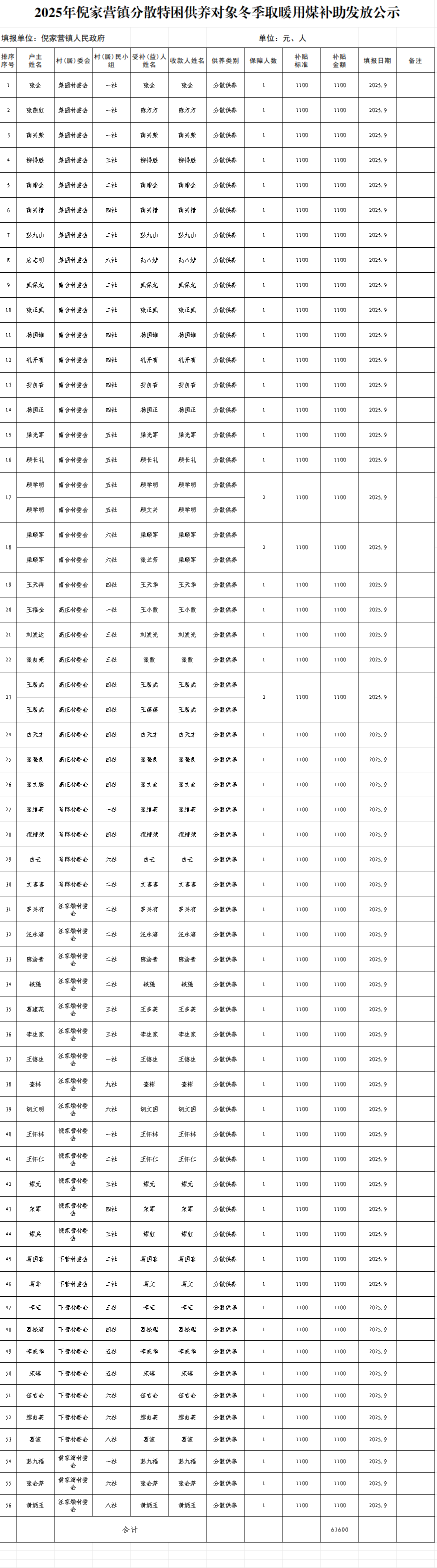 2025年倪家营镇分散特困供养对象冬季取暖用煤补助发放公示