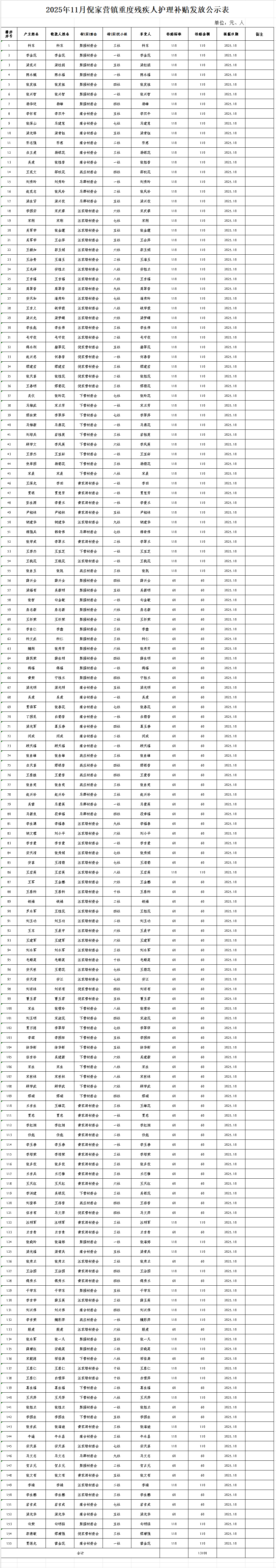2025年11月倪家营镇重度残疾人护理补贴发放公示