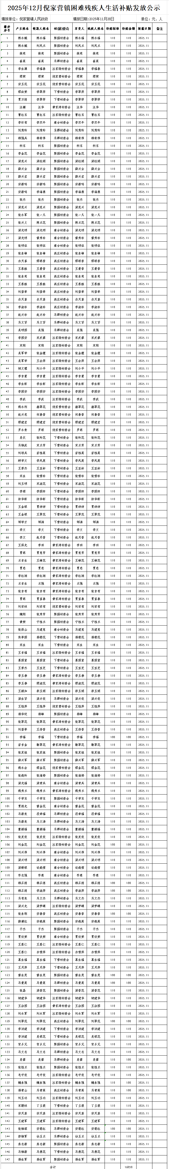 2025年12月倪家营镇困难残疾人生活补贴发放公示