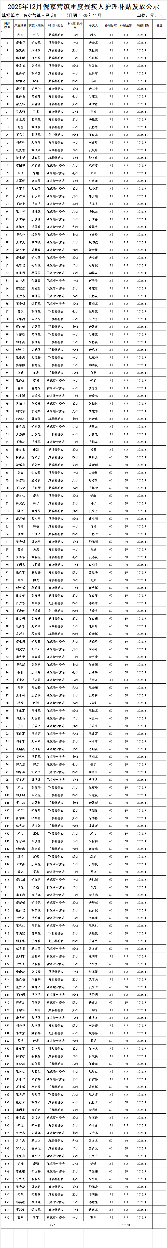 2025年12月倪家营镇重度残疾人护理补贴发放公示