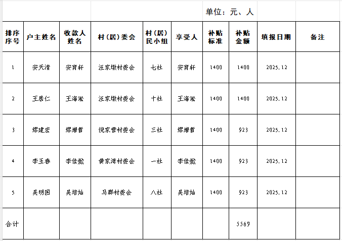 2026年1月倪家营镇事实无人抚养儿童基本生活补贴发放公示