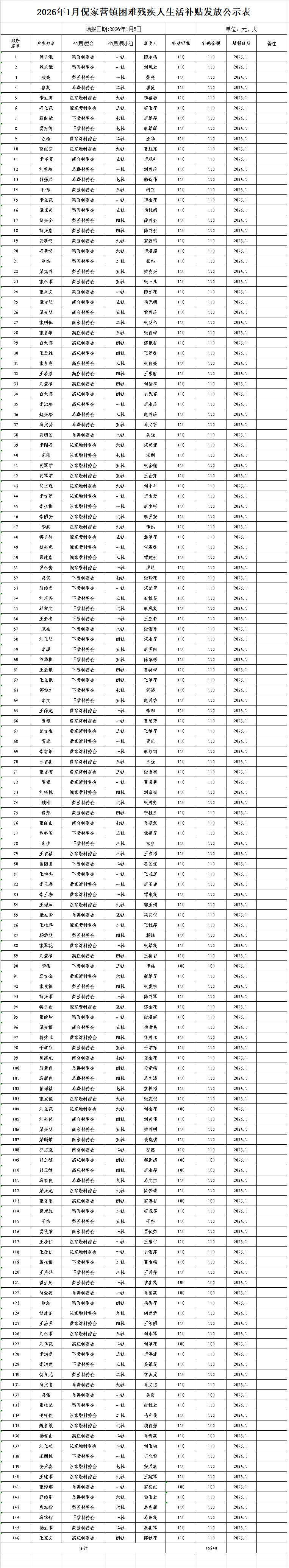 2026年1月倪家营镇困难残疾人生活补贴发放公示