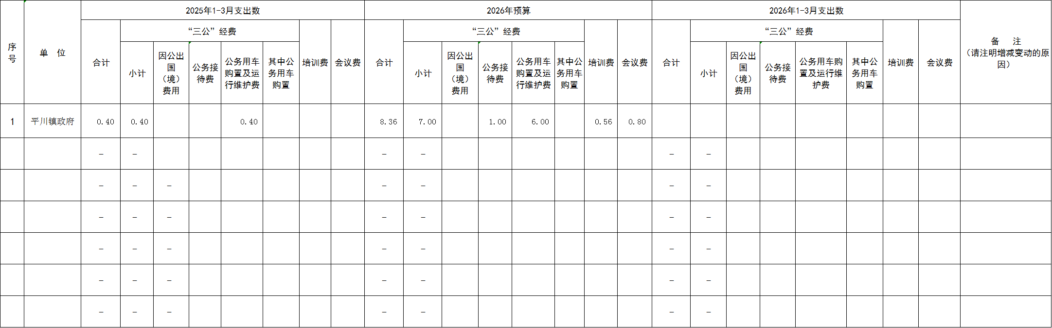 临泽县平川镇2026年1-3月有关经费开支情况统计表