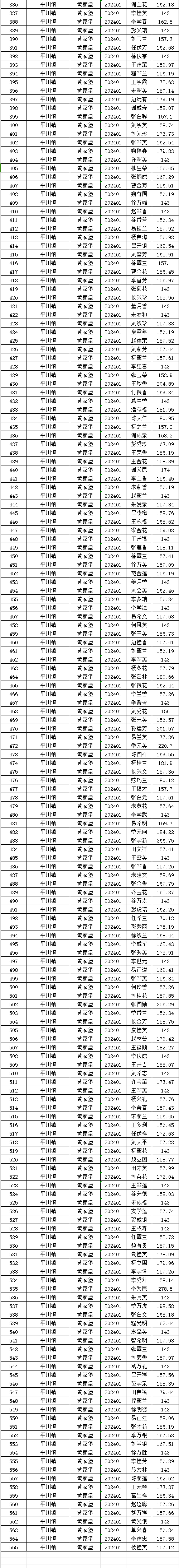 黄家堡村1月城乡居民基本养老保险养老金发放花名表
