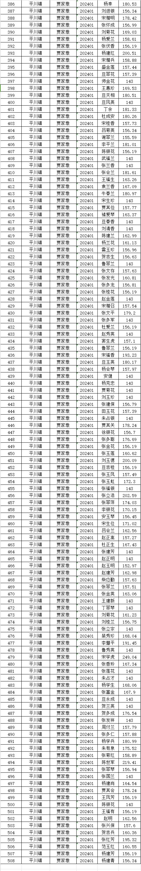 贾家墩村1月城乡居民基本养老保险养老金发放花名表