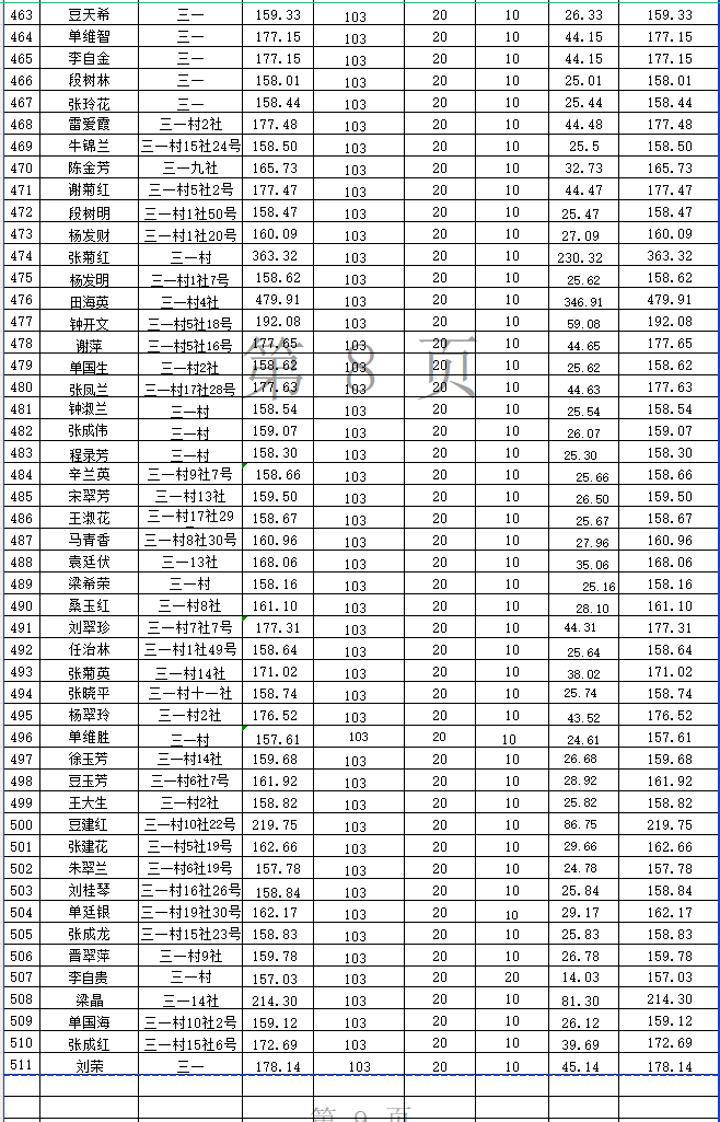 三一村2月城乡居民基本养老保险养老金发放花名表