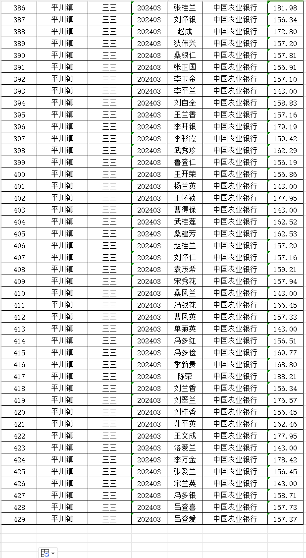 三三村3月城乡居民基本养老保险养老金发放花名表