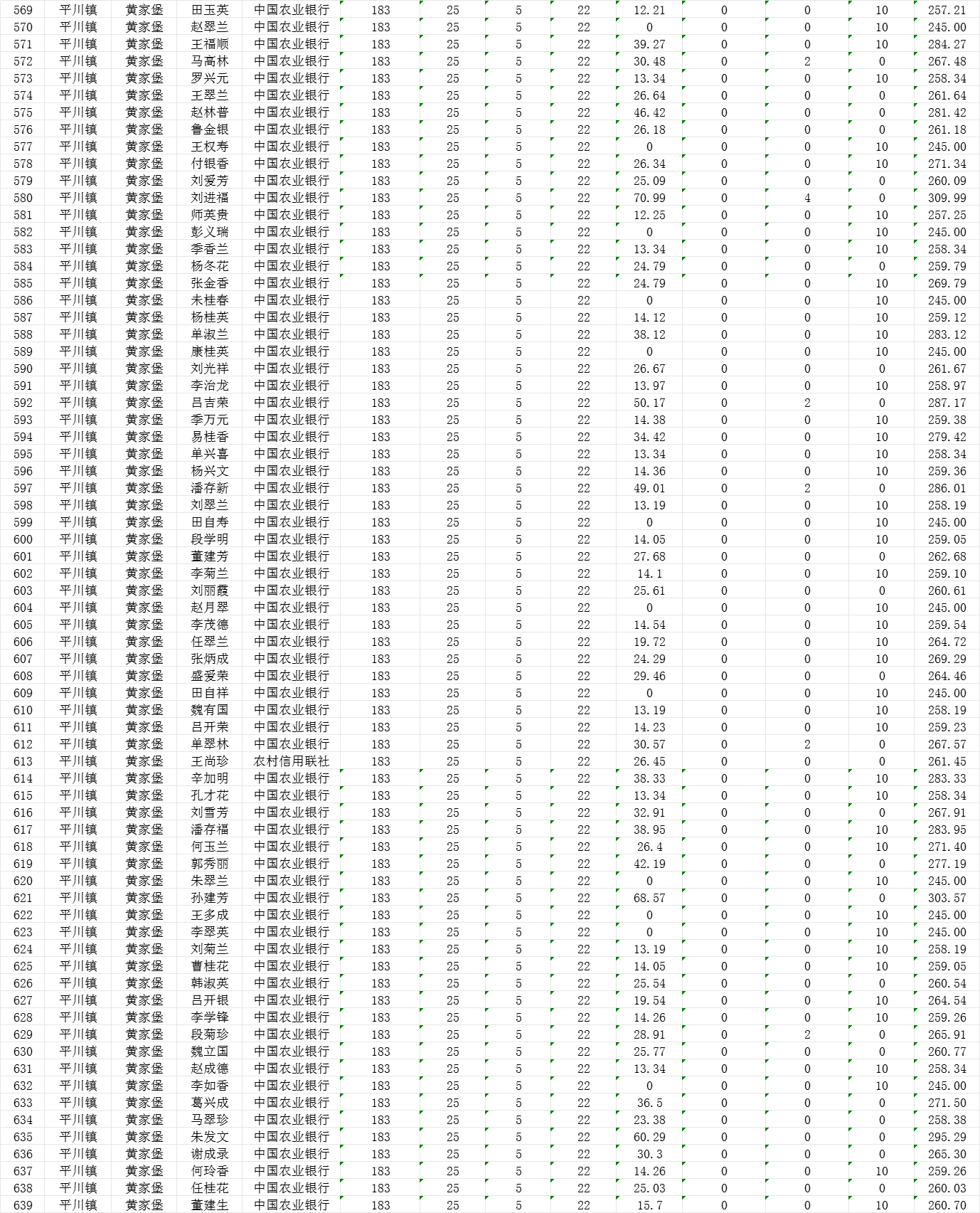 黄家堡村9月城乡居民基本养老保险养老金发放花名表