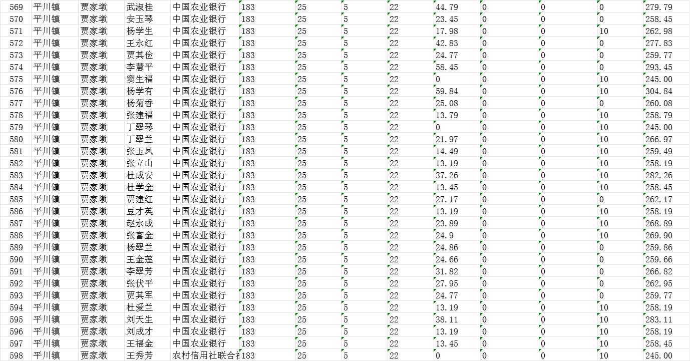 贾家墩村9月城乡居民基本养老保险养老金发放花名表