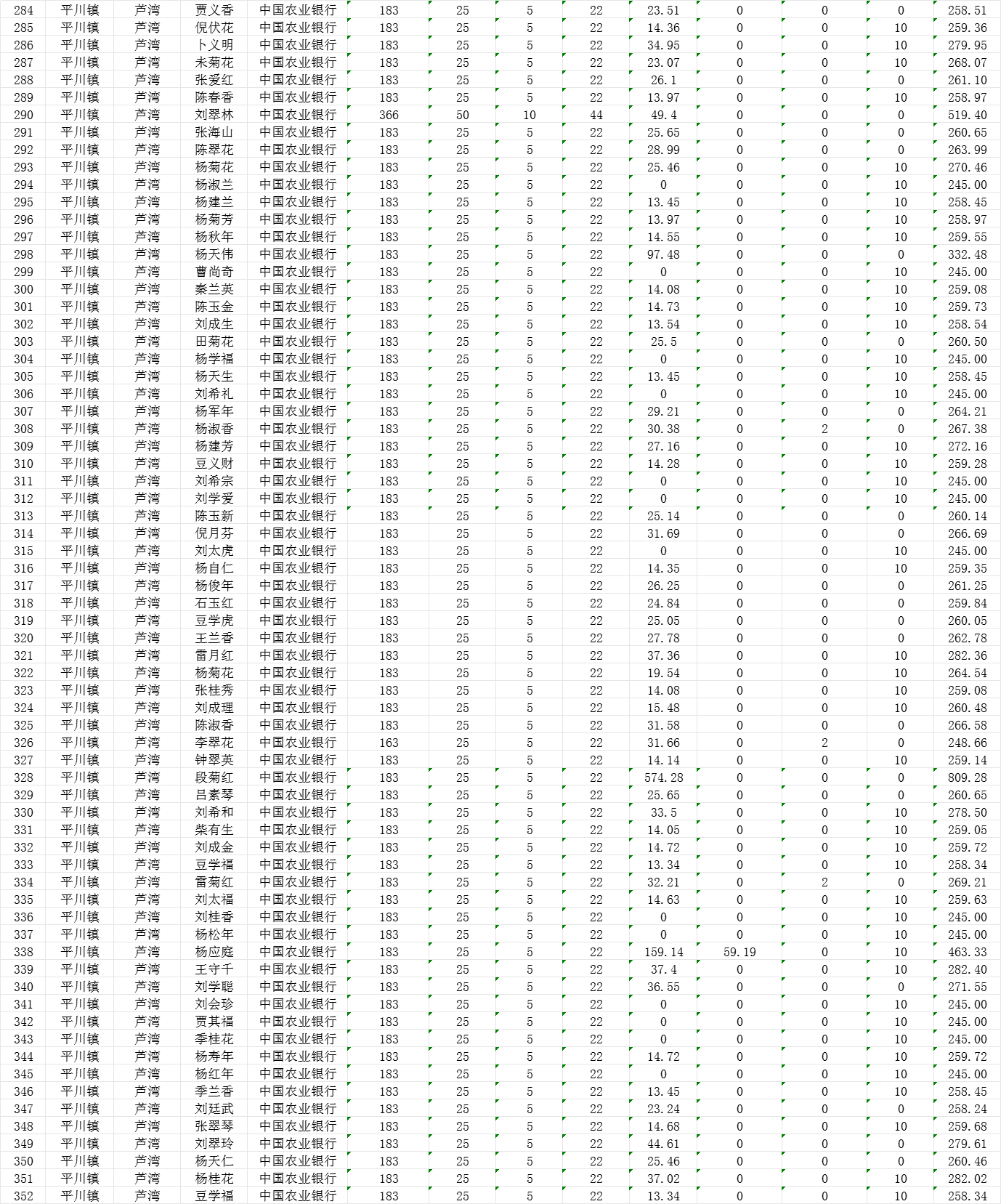 芦湾村9月城乡居民基本养老保险养老金发放花名表