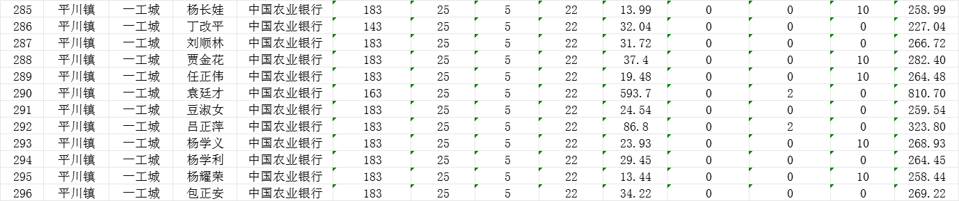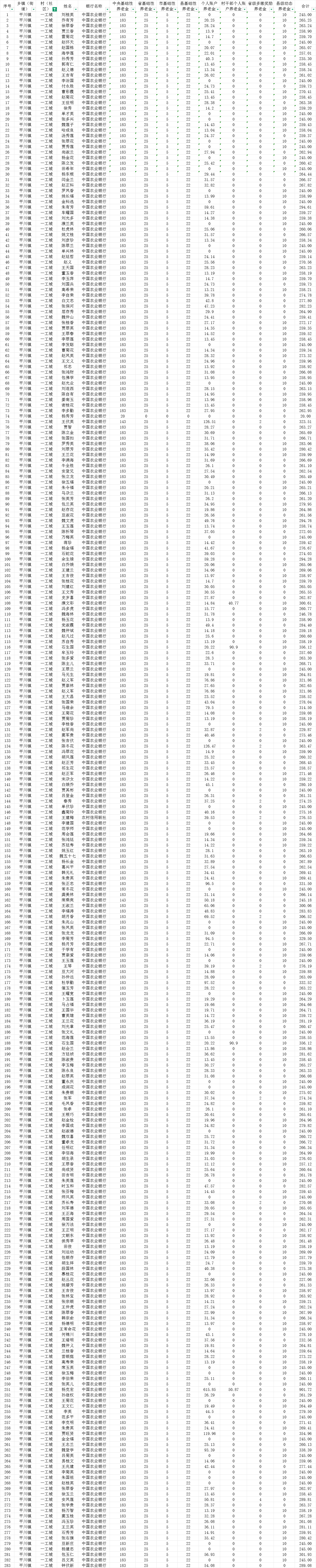 一工城村9月城乡居民基本养老保险养老金发放花名表