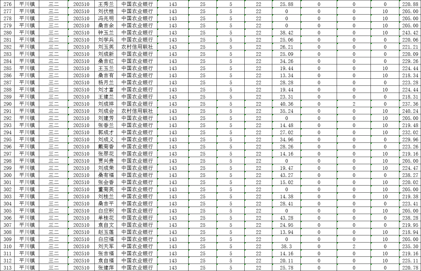 三二村10月城乡居民基本养老保险养老金发放花名表