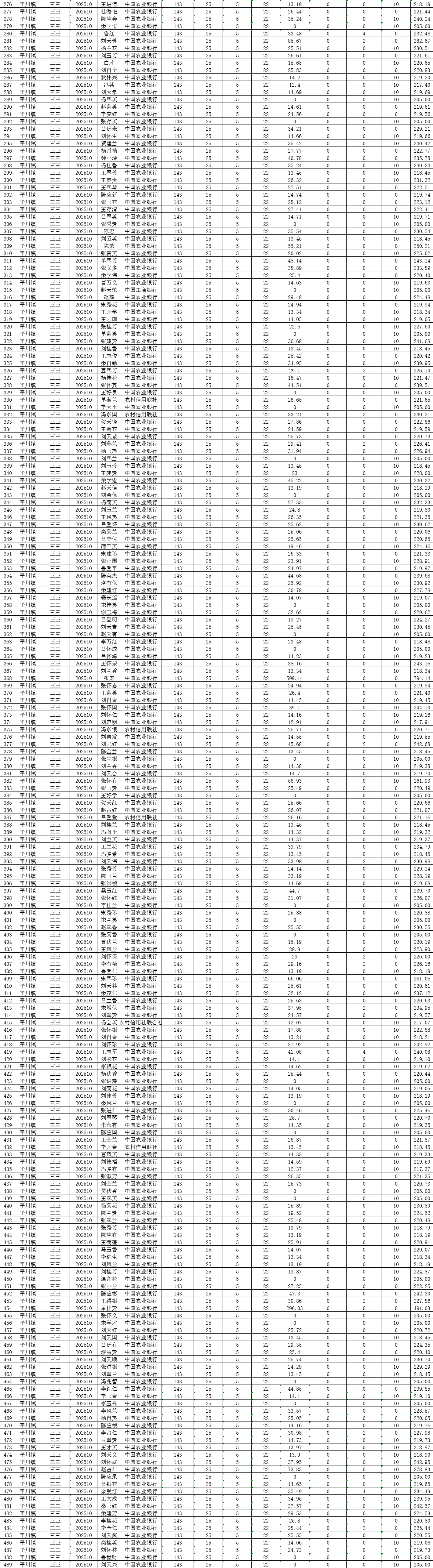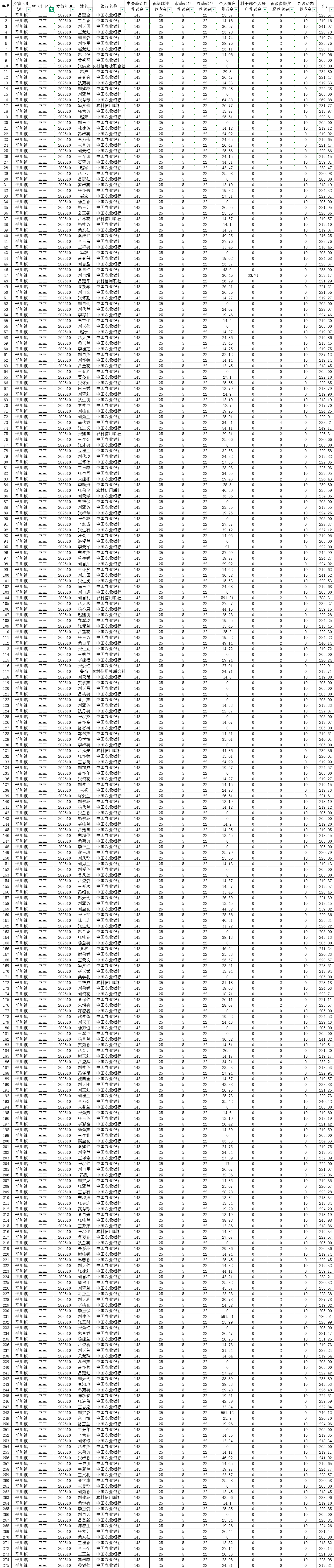 三三村10月城乡居民基本养老保险养老金发放花名表