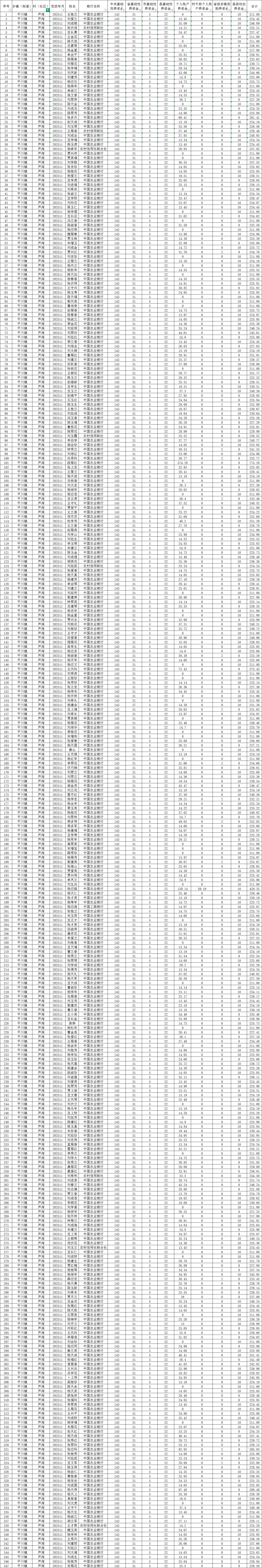 芦湾村11月城乡居民基本养老保险养老金发放花名表