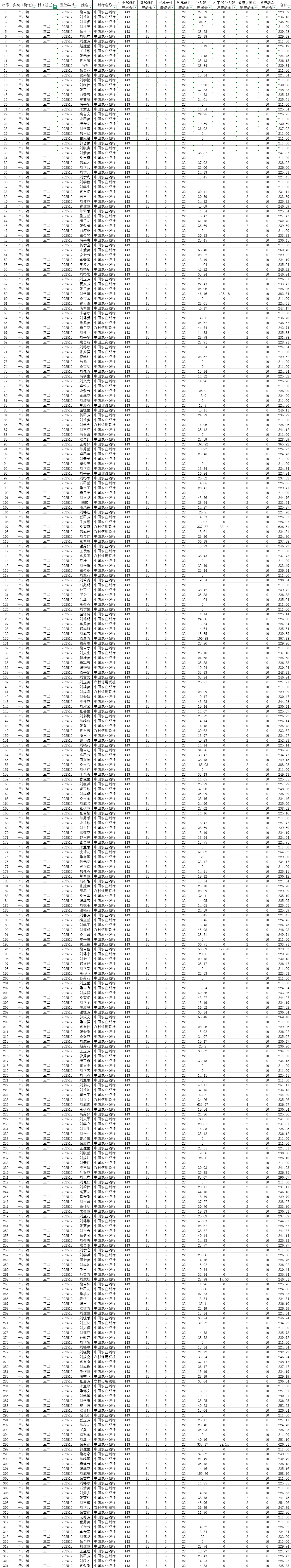 三二村12月城乡居民基本养老保险养老金发放花名表