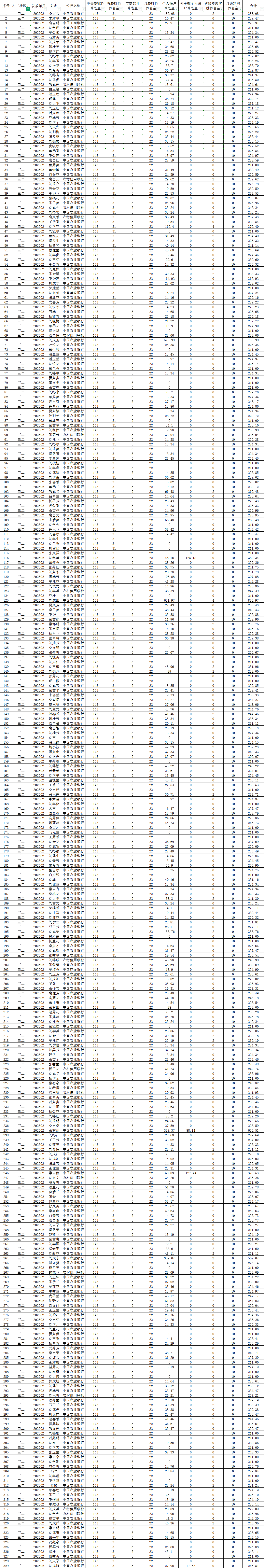 三二村2月城乡居民基本养老保险养老金发放花名表
