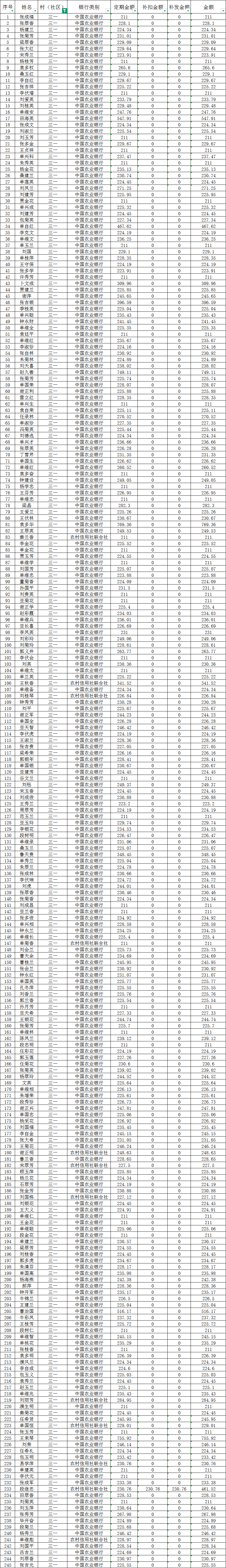 三一村3月城乡居民基本养老保险养老金发放花名表