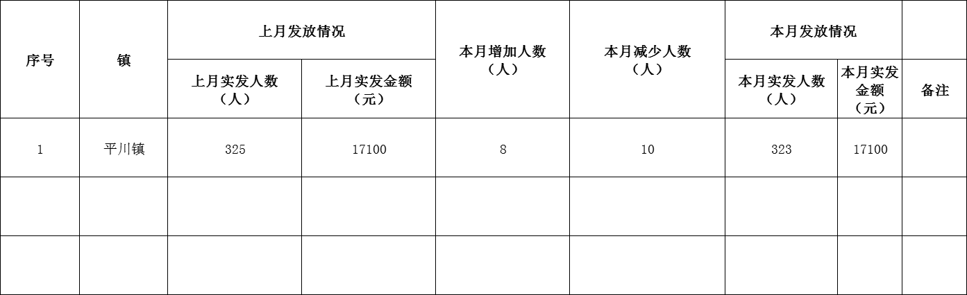 临泽县平川镇11月高龄津贴发放对象变动汇总表