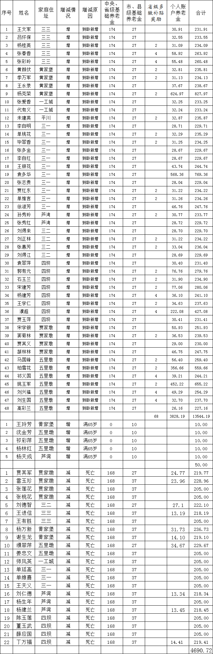 临泽县平川镇11月城乡居民基本养老保险养老金发放花名表