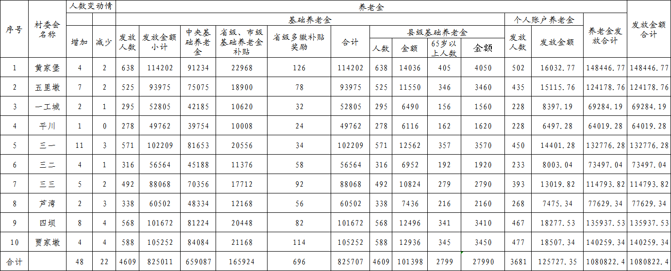 临泽县平川镇11月城乡居民社会养老保险养老金申报汇总表(农村居民)