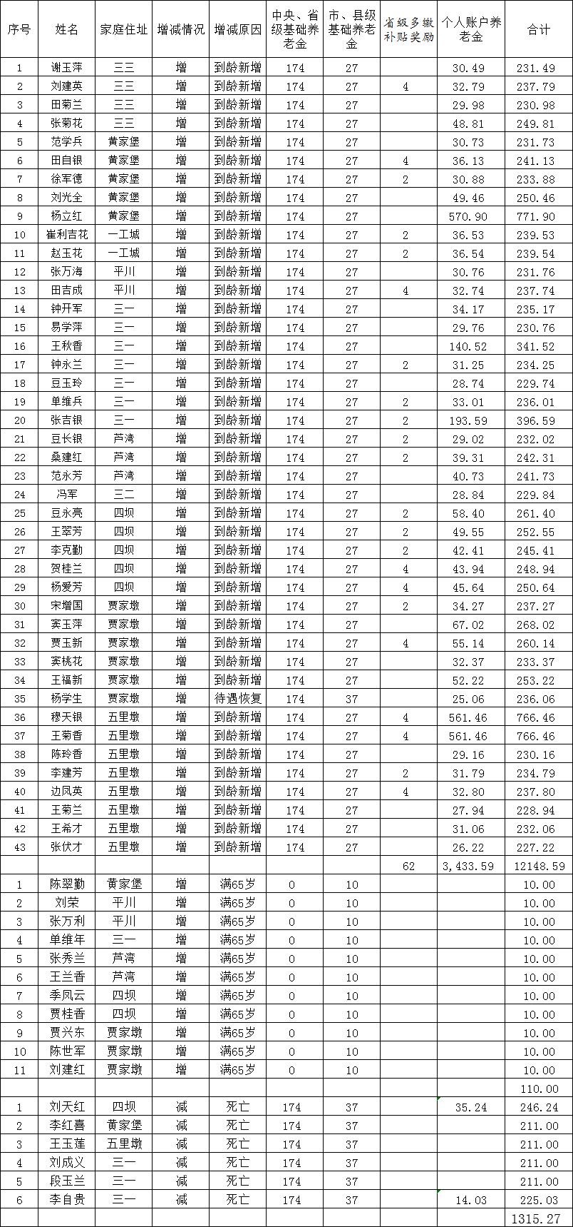 临泽县平川镇12月城乡居民基本养老保险养老金发放花名表