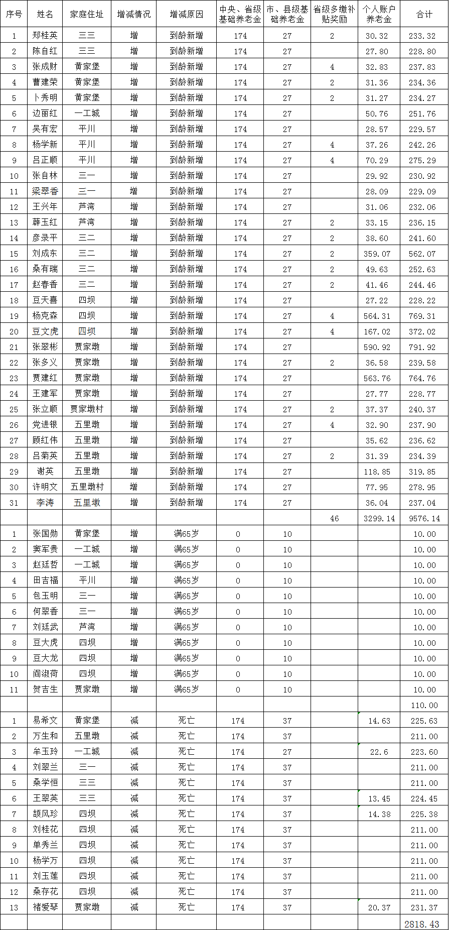 临泽县平川镇1月城乡居民基本养老保险养老金发放花名表