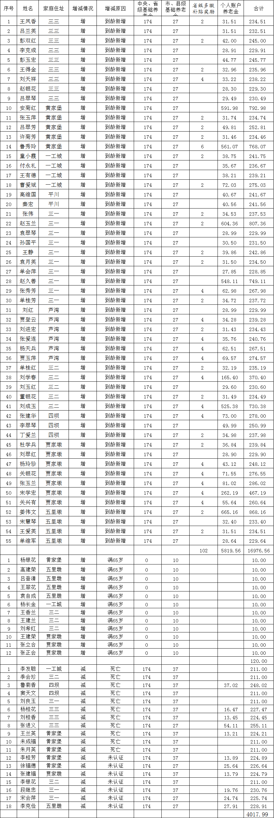 临泽县平川镇2月城乡居民基本养老保险养老金发放花名表