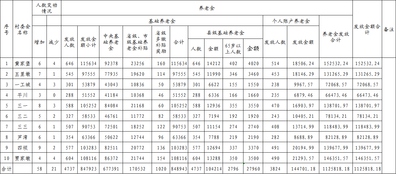 临泽县平川镇3月城乡居民社会养老保险养老金申报汇总表(农村居民)