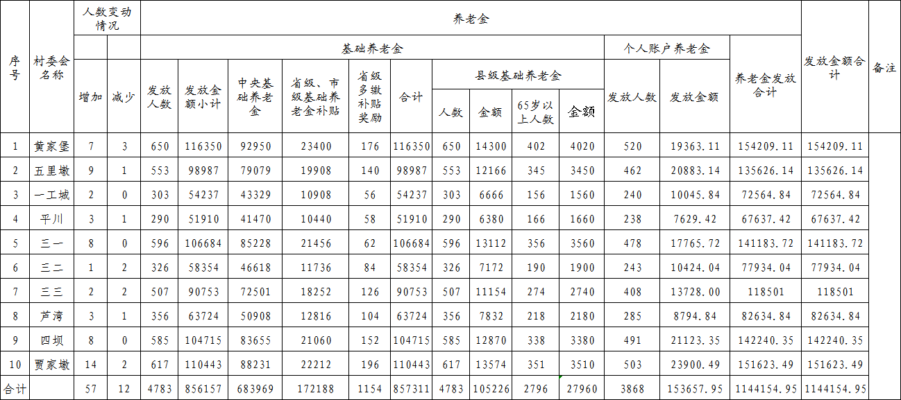 临泽县平川镇4月城乡居民社会养老保险养老金申报汇总表(农村居民)