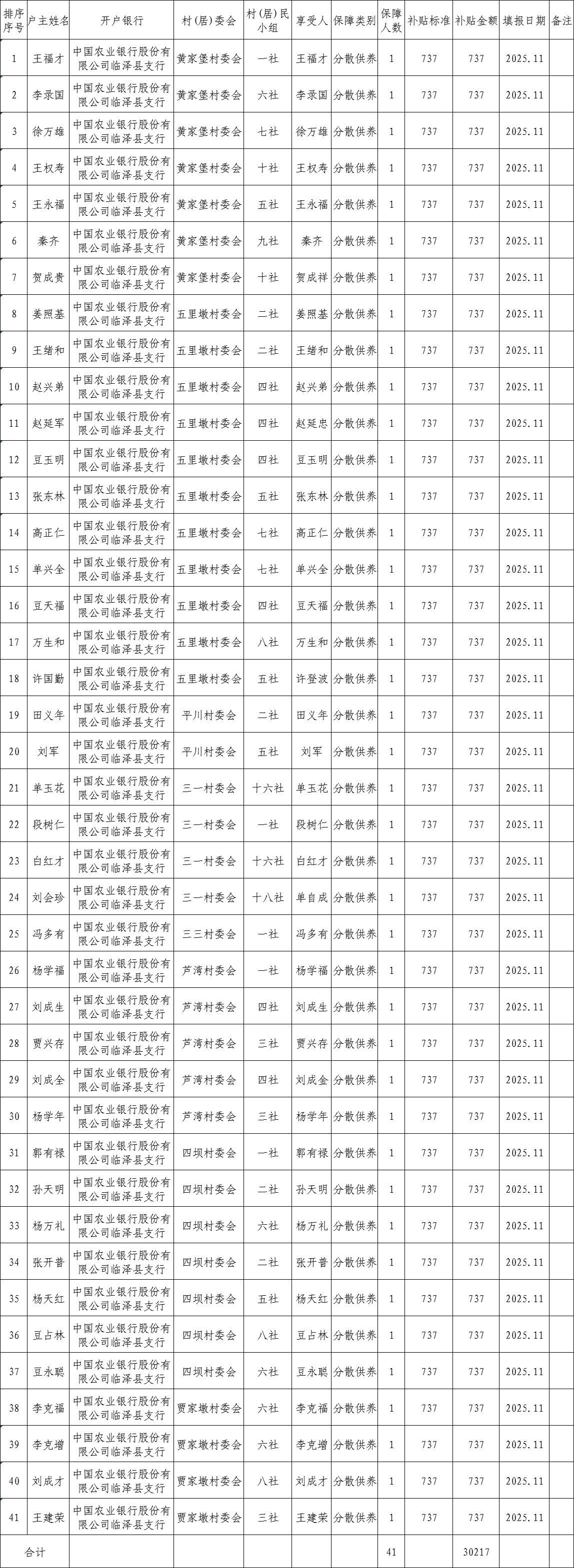 2025年12月临泽县平川镇特困供养对象资金发放表