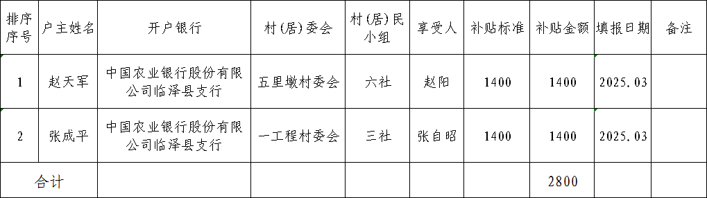 二〇二六年临泽县平川镇孤儿生活费4月发放统计表
