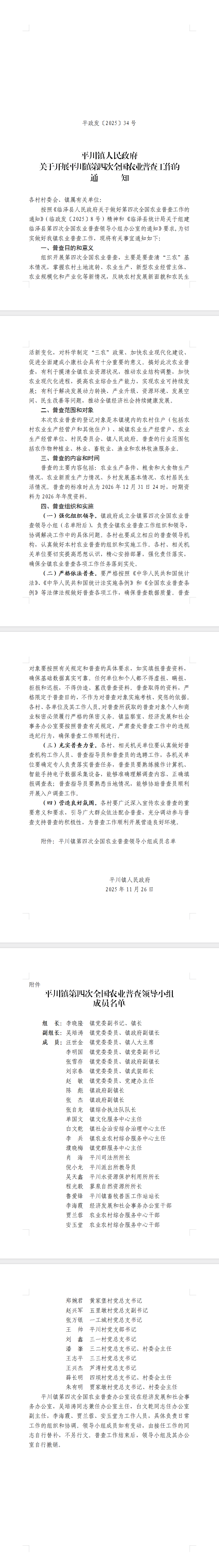 平川镇人民政府 关于开展平川镇第四次全国农业普查工作的通知
