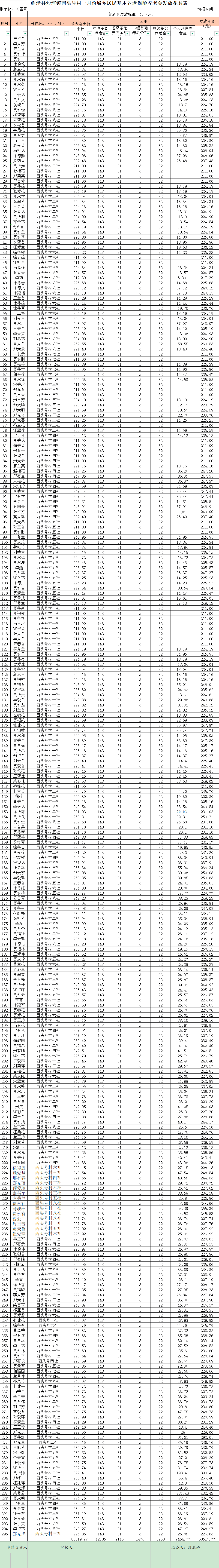 临泽县沙河镇西头号村一月份城乡居民基本养老保险养老金发放花名表