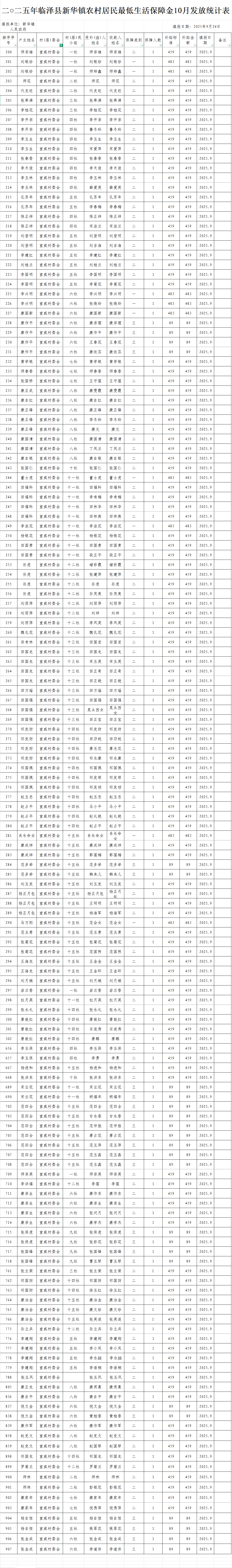 2025年临泽县新华镇宣威村农村低保10月发放统计表