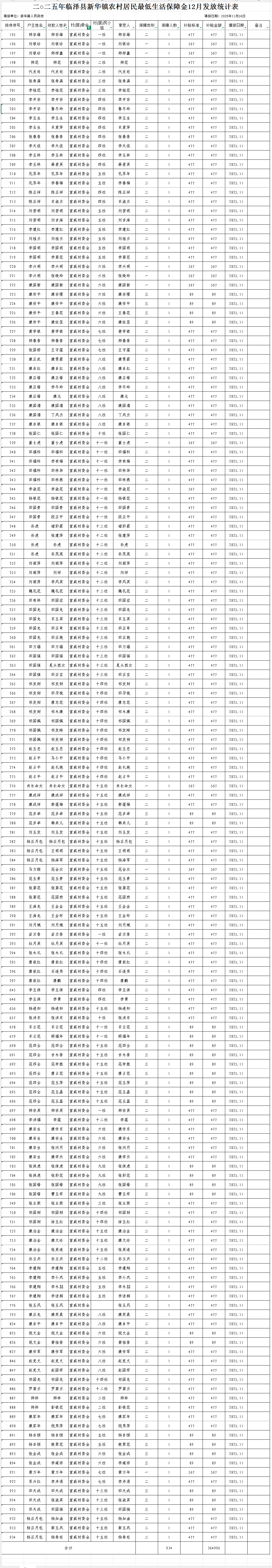 2025年临泽县新华镇宣威村农村低保12月发放统计表