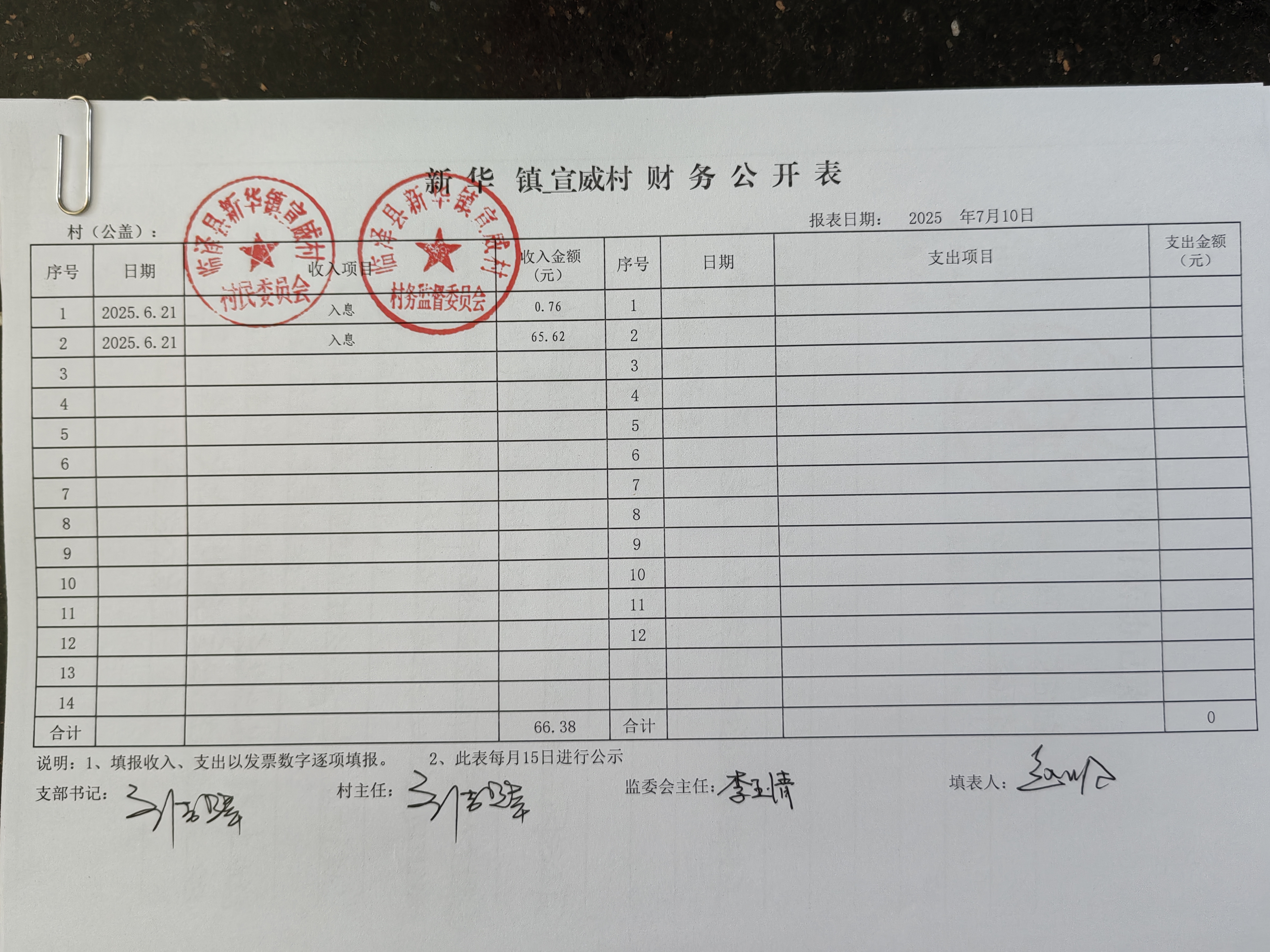新华镇宣威村2025年6月份财务公开
