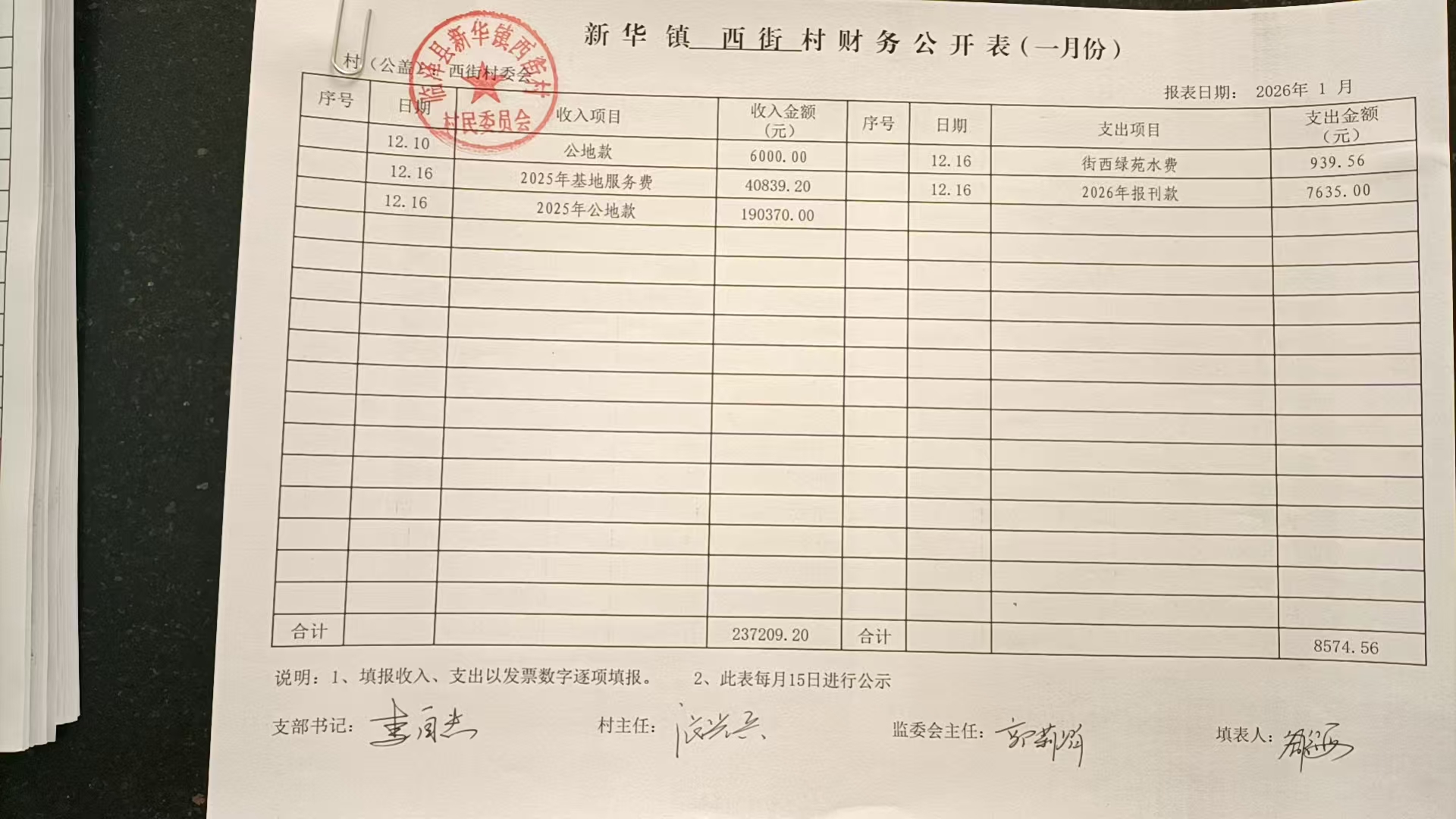 新华镇西街村2025年12月份财务公开