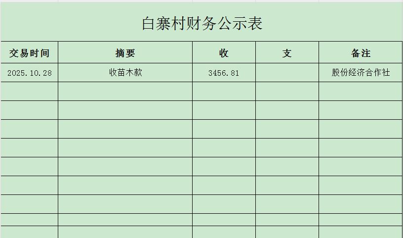 鸭暖镇白寨村10月财务公示表
