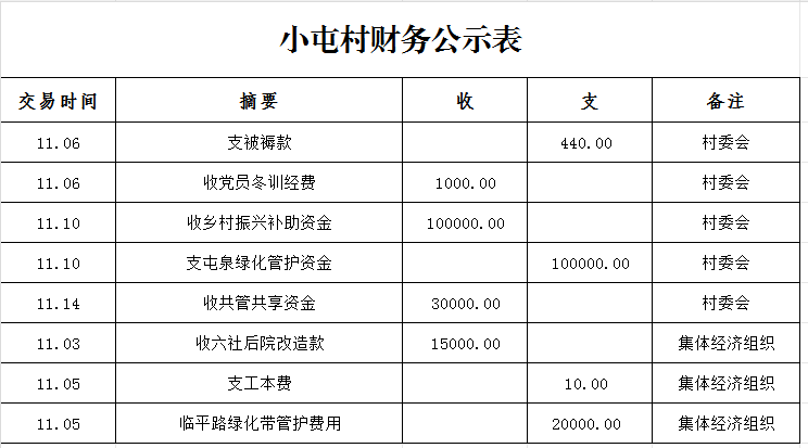 鸭暖镇小屯村11月财务公示表
